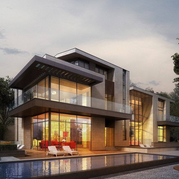 建筑遵循了住宅的通用設(shè)計語言,平整的建筑線條以及沉穩(wěn)色系。建筑、景觀、室內(nèi)的都有其各自獨(dú)特的出場方式,大面積的落地窗將起居空間與室外泳池及花園連接起來,實(shí)現(xiàn)室內(nèi)室外在空間語言上的共存。