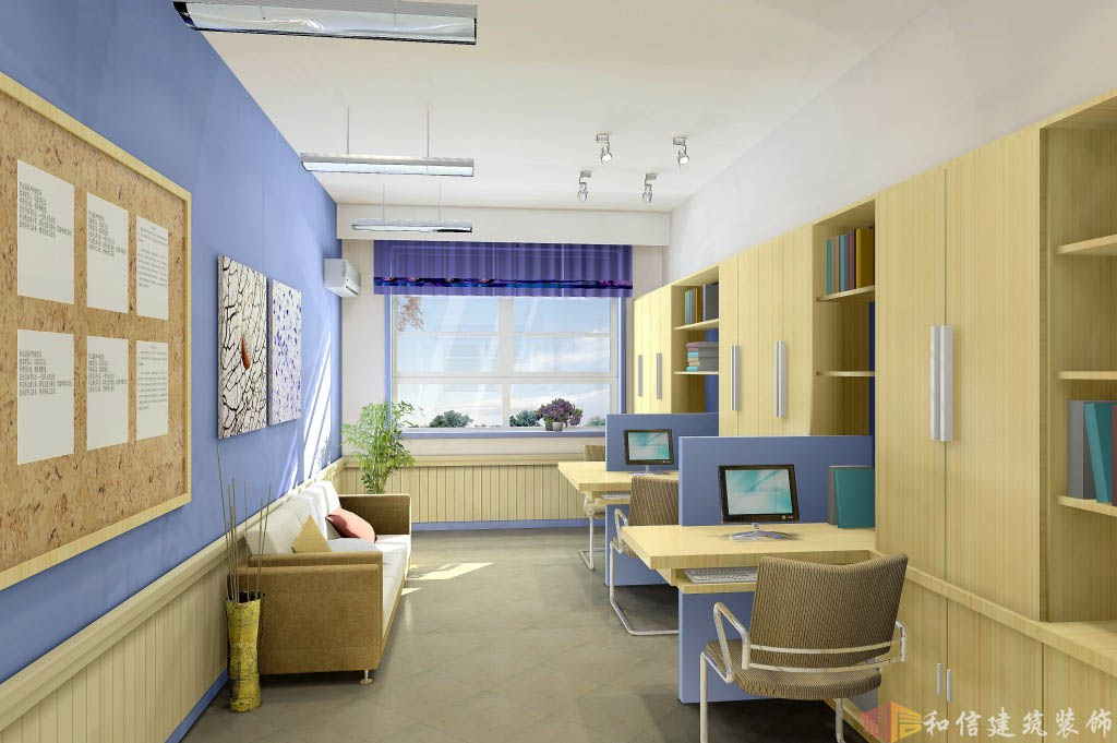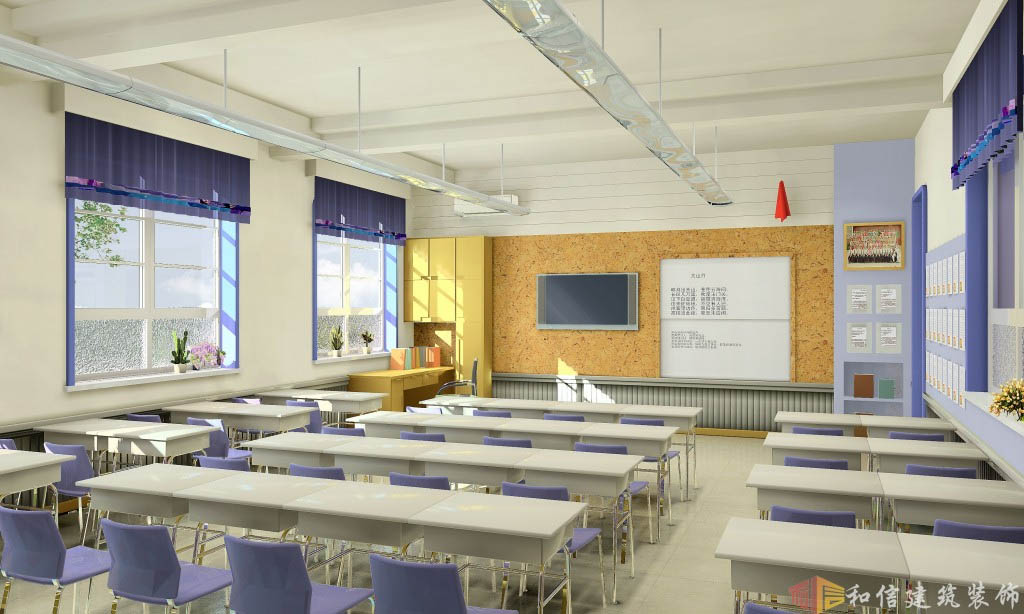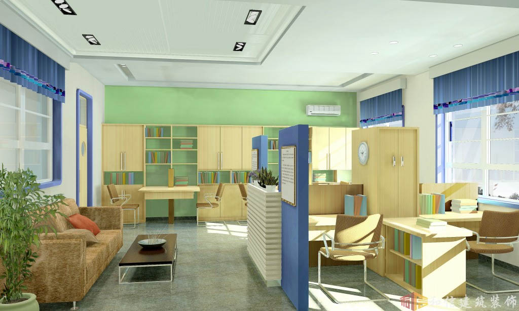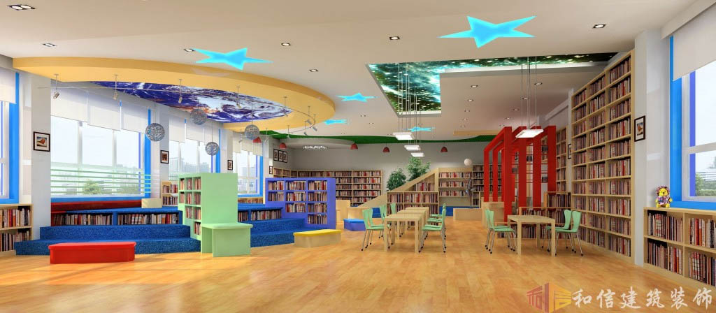 和信建筑以現(xiàn)代風格為導向,利用合理的空間與分配,結(jié)合顏色、光、電鞥現(xiàn)代表現(xiàn)手法,為孩子創(chuàng)造出一個寬敞明亮 、溫馨舒適的學習環(huán)境。和信設計師團隊采用充滿靈動的色彩格子,運用不拘一格的空間設計,活躍了孩子的思維,對于培養(yǎng)孩子開朗的性格有極大的幫助。本次設計成功之后獲得了學校領導的一致好評。